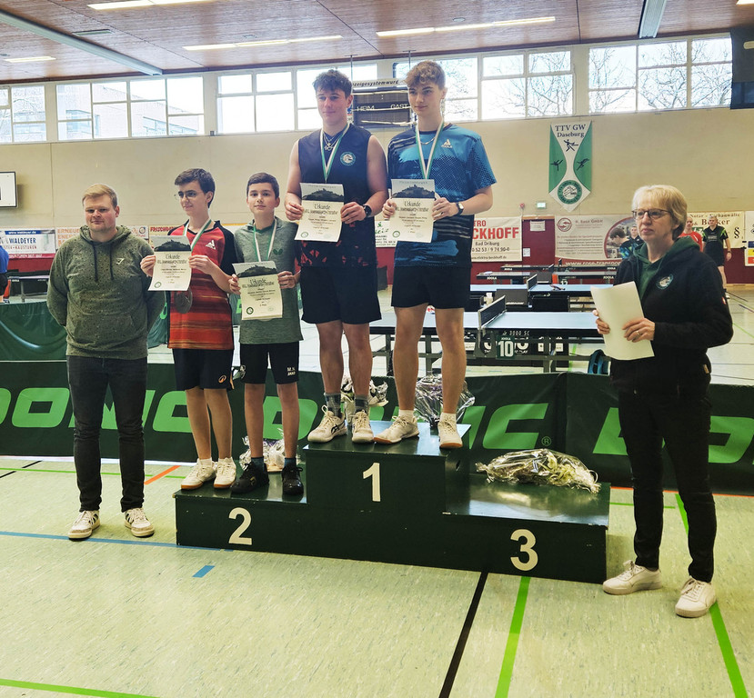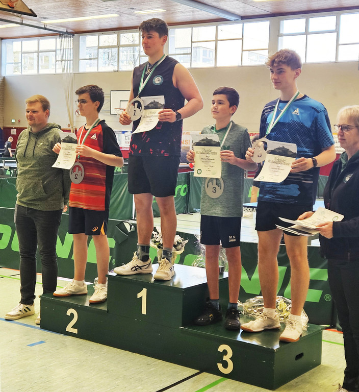 Marlon spielte sowohl im Einzel als auch im Doppel. Da in dieser Gruppe nur insgesamt sechs Teilnehmer gemeldet waren, wurde in zwei Gruppen zu dritt gespielt. Im Einzel gewann Marlon beide Spiele jeweils knapp im 5. Satz mit 3:2 und landete damit direkt im Halbfinale. Hier traf er dann auf seinen Doppelpartner Mihnea Onaca (TTC Berlin Eastside), der gegen Marlon dann doch sehr klar mit 3:0 gewann. Im zweiten Halbfinale spielten Philip Faupel gegen Lennard Sticklen (beide Grün-Weiß Daseburg), hierbei setzte sich Philip Faupel klar durch und tarf dann im Finale auf den Gegner von Marlon, Mihnea Onaca. Im Endspiel konnte sich dann Faupel erst im fünften Satz gegen Onaca durchsetzen und gewann 3:2. Im Doppel mit Mihnea Ohnaca konnte Marlon ein Spiel gewinnen und eins ging verloren, damit erreichte er den 2. Platz beim Doppel und den 3. Platz im Einzel.