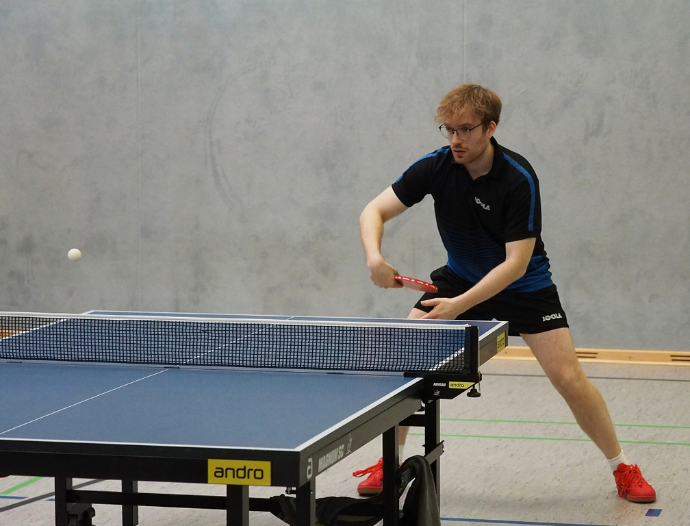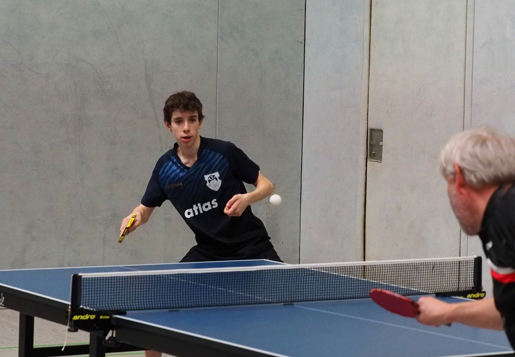 Henri Grzibek (SV Rot-Weiß Alfen), den er klar in drei Sätzen besiegte. Dann aber stieß er im Achtelfinale auf den späteren Sieger Gerrit Haar (TTC Ladbergen), gegen den er sich nach dem ersten