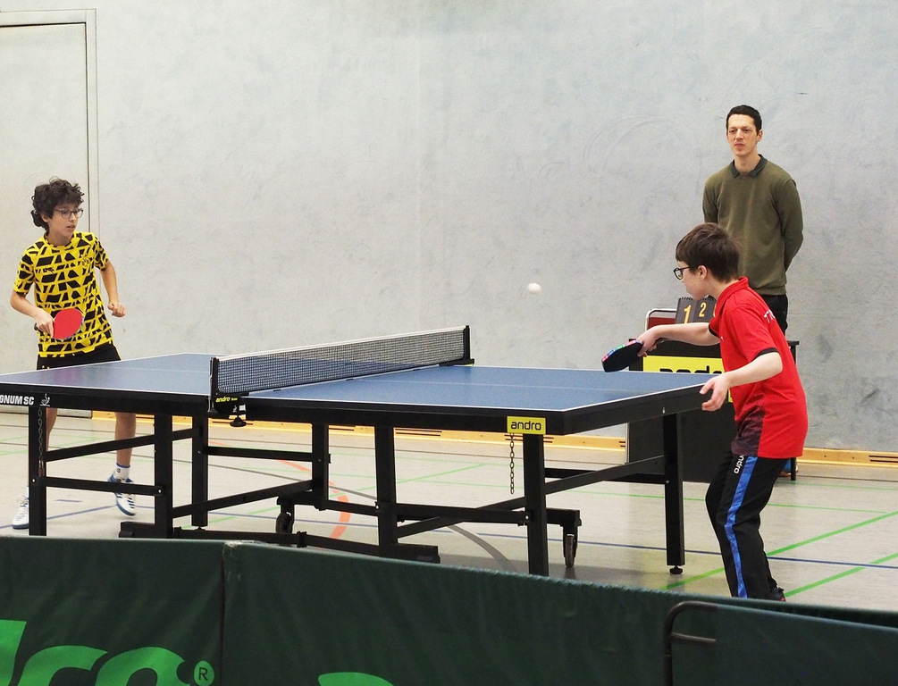 Parallel dazu spielte die 1. Herren gegen den TTC SF Herne III, die diesmal in Bestbesetzung antraten und dann auch gleich beide Doppel gewannen. Im weiteren Verlauf konnten dann die Spieler des TTC, die mit Thorben, Matthias, Mario und Benno antraten, doch noch im Einzel einige Spiele für sich entscheiden. Thorben gewann beide Einzelspiele, Mario eins und auch Benno gewann eines seiner Einzel gegen Anatali Stenzel im 5. Satz. So hieß es dann am Ende 6:4 für die Mannschaft aus Herne.