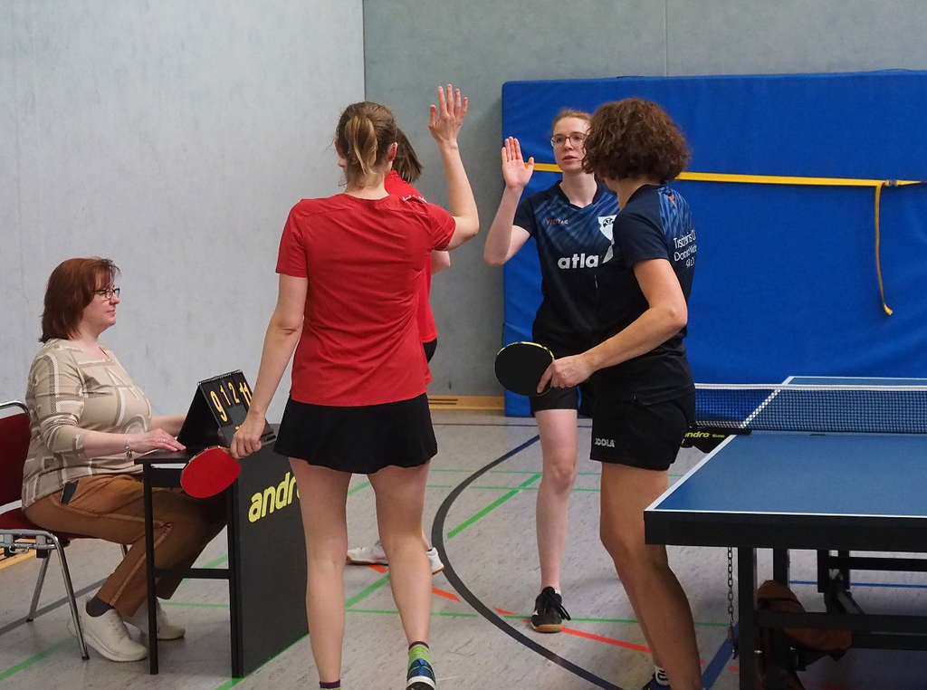 Am 1. März empfing die 1. Damenmannschaft die Gegnerinnen von Spvgg. Meiderich 06/95, gegen die in der Hinrunde noch verloren wurde und die in der NRW-Liga an zweiter Stelle platziert waren. Aber durch eine starke Mannschaftsleistung konnten die TTC-Damen in der Besetzung Karen, Hanne, Elke, Nadine die Meidericher Mannschaft 6:4 bezwingen, nachdem gleich zu Beginn beide Doppel gewonnen wurden. Damit beweisen die Damen, dass sie sich in der NRW-Liga sehr gut behaupten können.